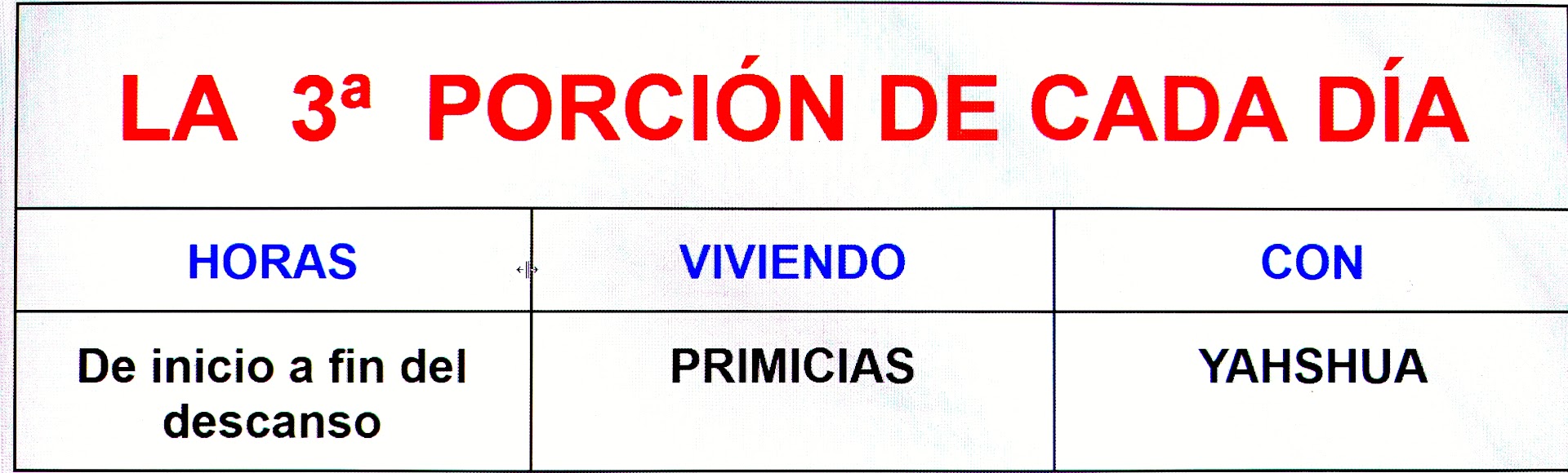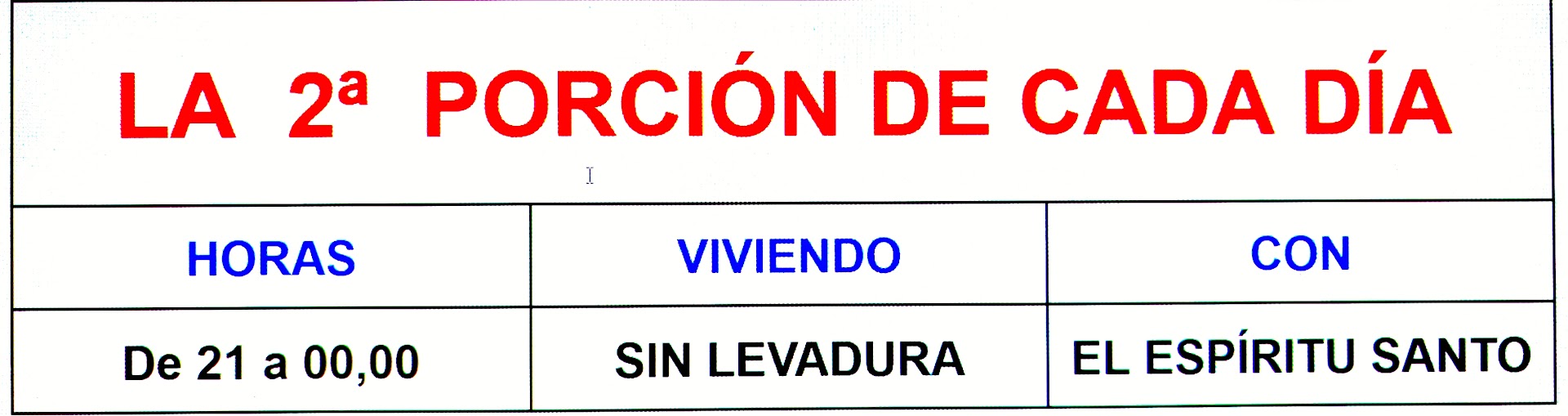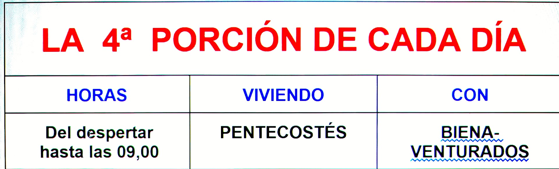 Lo mismo que haríamos al partir el pan de la mesa para varias raciones, tomamos el día y lo partimos en siete porciones como se indica en el cuadro adjunto arriba. De esta manera cada fraccion abarca varias horas o periodo del día. En cada uno de osos periodos horarios "se consume" o se ora conforme se indica en esta guia de oraciones.