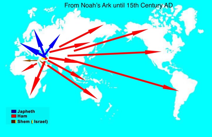 No deja der ser curioso y muy simbolico que los tres hijos de Noe partieron y ocuparon toda la tierra desde el monte Ararat. Fue realmente la primera partición de la Tierra, hecha y ordenada por Dios a Noe .